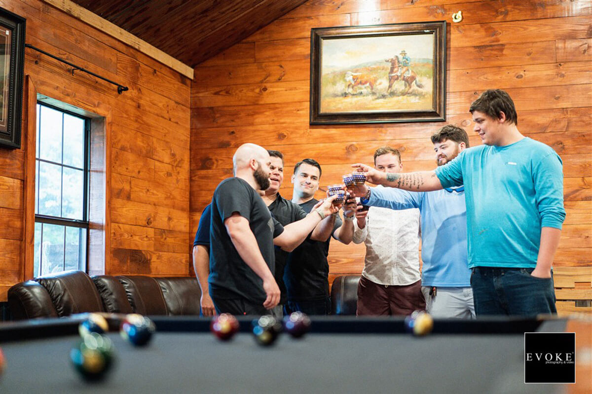Both of our rooms are a sanctuary for your guys to relax before the ceremony. Both feature a bar where the guys can enjoy a few beverages during the day. They can catch a sporting event on the big screen televisions, play pool on the pool table, play cards, bring a Play Station, or just hang out on the patio area. Cigars are welcome, as long as they’re outside!